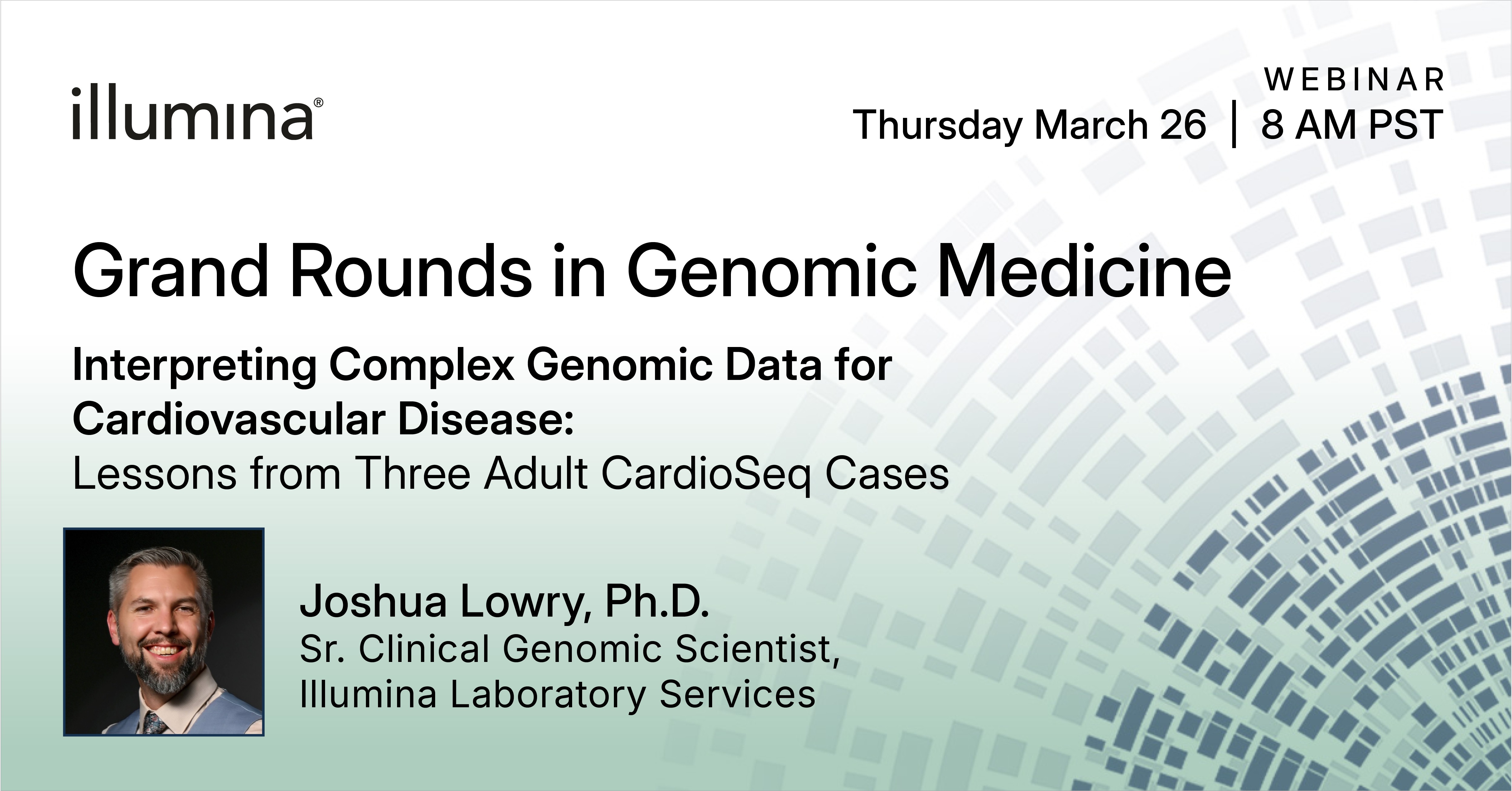 Perspectives bridging genomics, pathology, and clinical practice for holistic interpretation. Participants are encouraged to bring their complex case questions for collaborative discussion with Illumina Medical Affairs, thought leaders, and peers in a highly interactive forum.