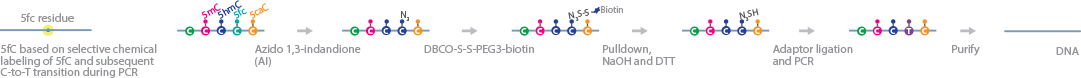 fC-CET is a bisulfite-free method for whole-genome analysis of 5fC. The method is based on selective chemical labeling of 5fC and subsequent C-to-T transition during PCR.