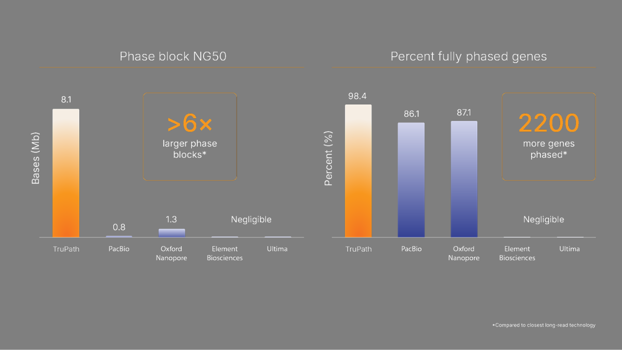 TruPath Genome provides a scalable, comprehensive genome from a few to thousands of samples per year. TruPath Genome delivers up to four times more genomes per run and cuts end‑to‑end turnaround time nearly in half compared to current long‑read approaches.2