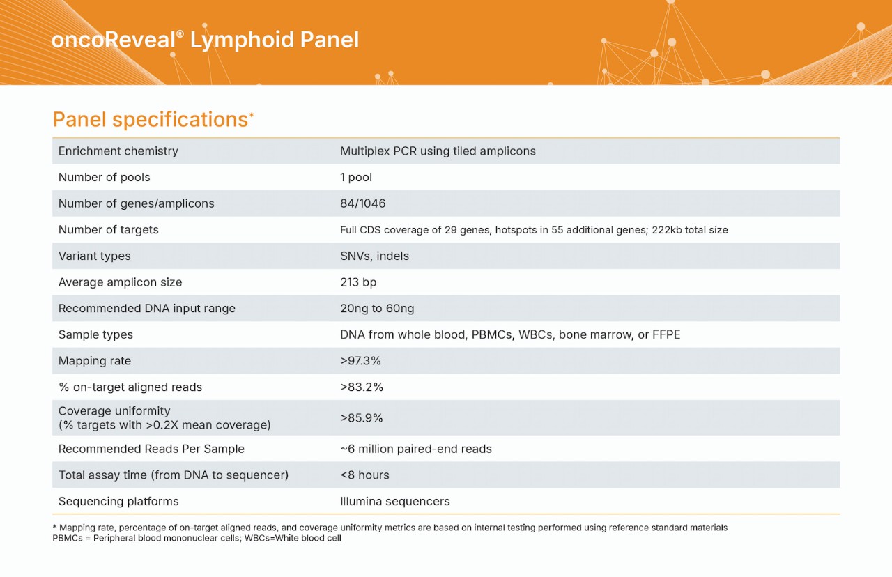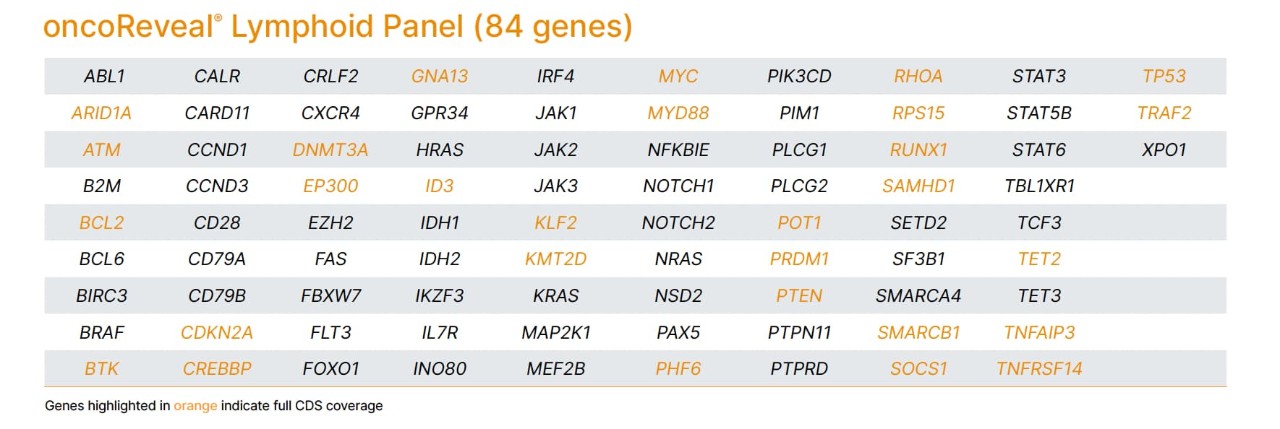 The Pillar oncoReveal Lymphoid Panel is a robust NGS assay that interrogates 84 key genes relevant to lymphoid cancers.